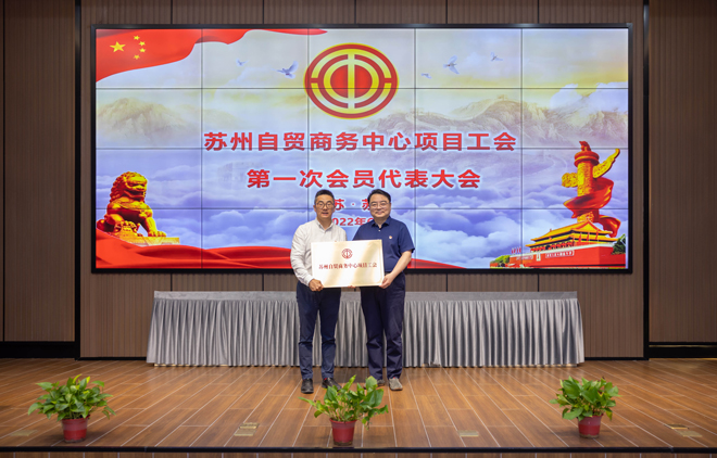 近日,蘇州自貿(mào)商務(wù)中心項目工會第一次會員代表大會順利召開,蘇州工業(yè)園區(qū)首個項目工會組織正式成立。蘇州工業(yè)園區(qū)總工會主席陳欣出席會議并為蘇州自貿(mào)商務(wù)中心項目工會授牌。