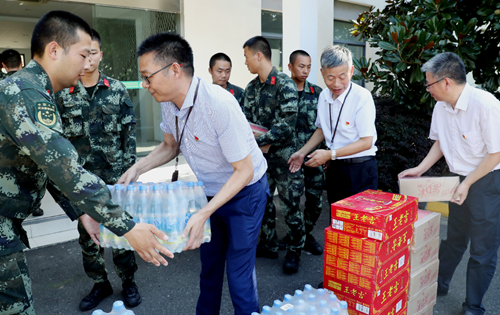 7月18日下午,兆豐公司黨支部組織黨員來(lái)到武警蘇州支隊(duì)一大隊(duì)一中隊(duì)進(jìn)行送清涼慰問(wèn)官兵活動(dòng),向在烈日下執(zhí)勤的武警官兵送去了飲料、毛巾等慰問(wèn)品,感謝他們?yōu)楸LK州平安作出的貢獻(xiàn)。